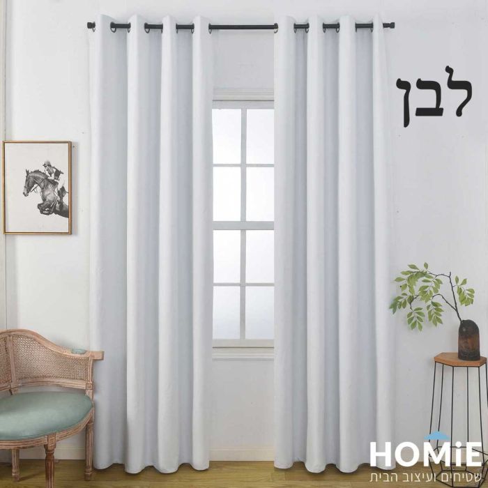 וילון האפלה אטום 100% חלק מודרני לסלון רינגים דגם קלריס | צבעים לבחירה