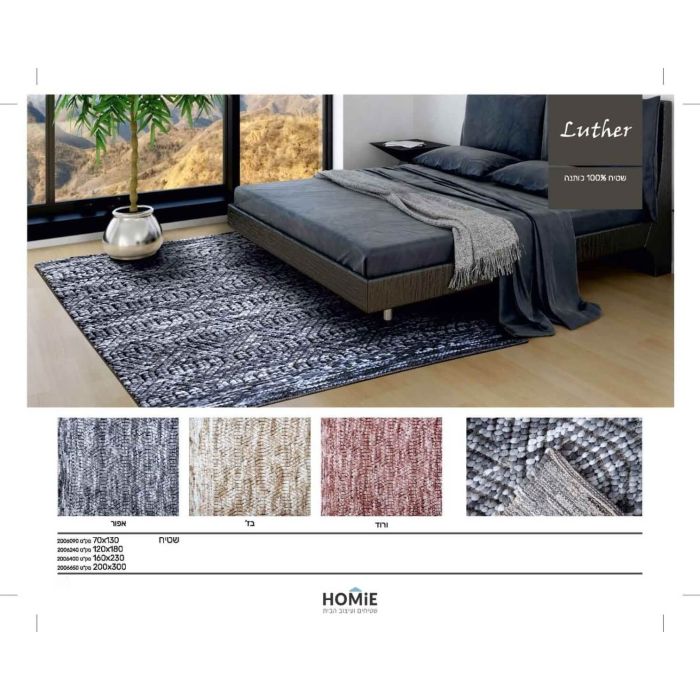 שטיח אבסטרקטי מודרני יוקרתי דגם לותר לסלון, לחדר שינה, לחדר ילדים, למסדרון, למטבח, לפינת אוכל, לחדר עבודה ולמשרד. השטיח המיוחד העשוי 100% כותנה בעל פונפונים קטנים, צפופים ומפנקים. בנוסף הוא ורסטילי, חזק, עמיד, עבה, צפוף, נעים מאוד למגע, פרקטי וקל לניקוי.