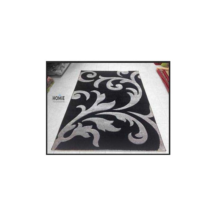 שטיח אבסטרקטי אפור שחור פרחוני דגם אקסלנס 03