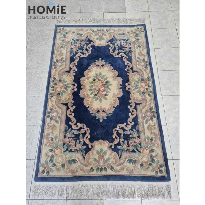 שטיח סיני בעבודת יד מצמר ניו-זילנדי – כחול קלאסי | מידה 190×120 ס"מ
