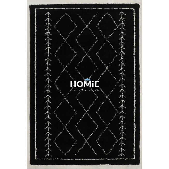 שטיח שאגי בוהו נורדי סקנדינבי אתני (שבטי) גיאומטרי מעויינים שחור לבן דגם פינלנד 02. השטיח המודרני היוקרתי ורסטילי מאוד ויתאים לכל חלל. אם זה סלון, חדר שינה, חדר ילדים, חדר אורחים, אמבטיה, מסדרון, פינת אוכל, מטבח, חדר עבודה, משרד ועוד. השטיח הכפרי הנפלא מגיע בסטייל ברבר המרוקאי המפורסם. תוסיפו לזה אלמנטים שבטיים מיוחדים ונעימים לעין וניגודיות מדליקה בין צבעי השחור והלבן ותקבלו יצירה יפיפיה. בנוסף הוא רך, מפנק, נעים מאוד למגע, חזק, עמיד, עבה, צפוף, פרקטי וקל לניקוי.