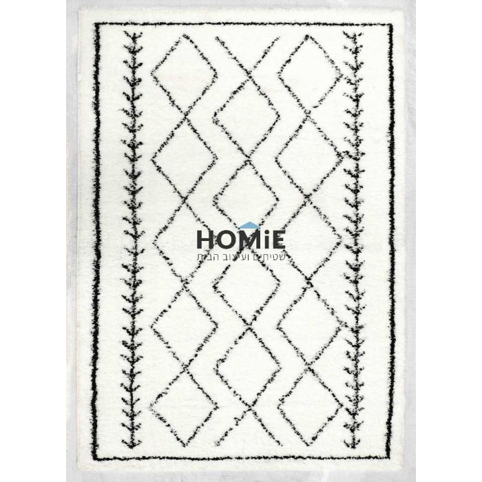 שטיח שאגי בוהו נורדי סקנדינבי אתני (שבטי) גיאומטרי מעויינים לבן שחור דגם פינלנד 01. השטיח המודרני היוקרתי רב גוני ויתאים לכל חלל. אם זה סלון, חדר שינה, חדר ילדים, חדר אורחים, אמבטיה, מסדרון, פינת אוכל, מטבח, חדר עבודה, משרד ועוד. השטיח הכפרי הנפלא מגיע בסטייל ברבר מרוקאי המפורסם. תוסיפו לזה אלמנטים שבטיים מיוחדים ונעימים לעין וניגודיות מדליקה בין צבעי הלבן והשחור ותקבלו יצירה יפיפיה. בנוסף הוא רך, מפנק, נעים מאוד למגע, חזק, עמיד, עבה, צפוף, פרקטי וקל לניקוי.