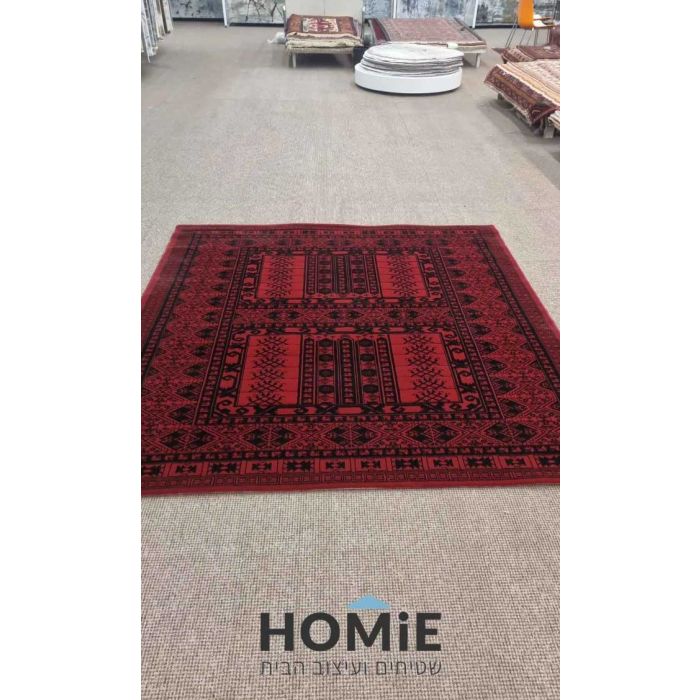 שטיח ריבוע קלאסי אפגני אדום שחור לסלון דגם הרמס