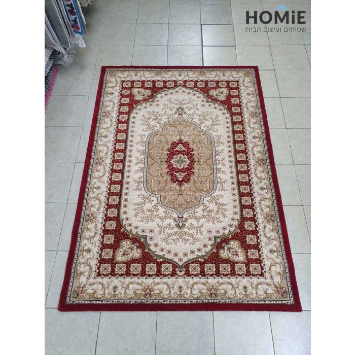 שטיח קלאסי מדליונים פרחוני אדום בז' דגם פומפיי 54/610
