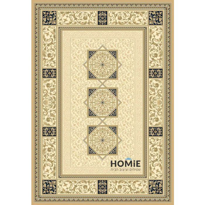שטיח קלאסי פרחוני מדליונים בז' שחור דגם פומפיי 50/684