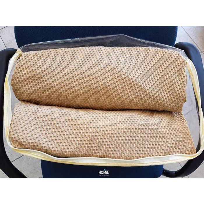כיסוי סלון אלסטי בז' כוורת עדינה 1+2+3 יוקרתי המתאים עצמו כמו כפפה לצורה וגודל הסלון. הכיסוי בעל יכולת אלסטית מרשימה ביותר (נמתח מכל צדדיו), עמיד, עבה, נעים למגע, כביס ובעל גומי היקפי פנימי השומר על חוזק וגמישות הבד. הכיסוי מתלבש על הספה בצורה אופטימלית ללא שום קמטים וסימני מתיחה.