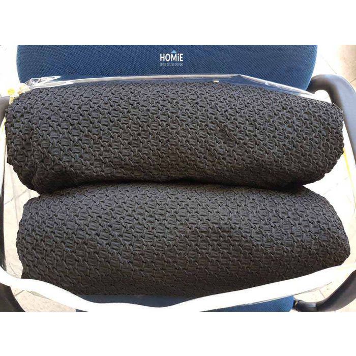 כיסוי סלון אלסטי שחור מעויינים עדינים 1+2+3 יוקרתי המתאים עצמו כמו כפפה לצורה וגודל הסלון. הכיסוי בעל יכולת אלסטית מרשימה ביותר (נמתח מכל צדדיו), עמיד, עבה, נעים למגע, כביס ובעל גומי היקפי פנימי השומר על חוזק וגמישות הבד. הכיסוי מתלבש על הספה בצורה אופטימלית ללא שום קמטים וסימני מתיחה.