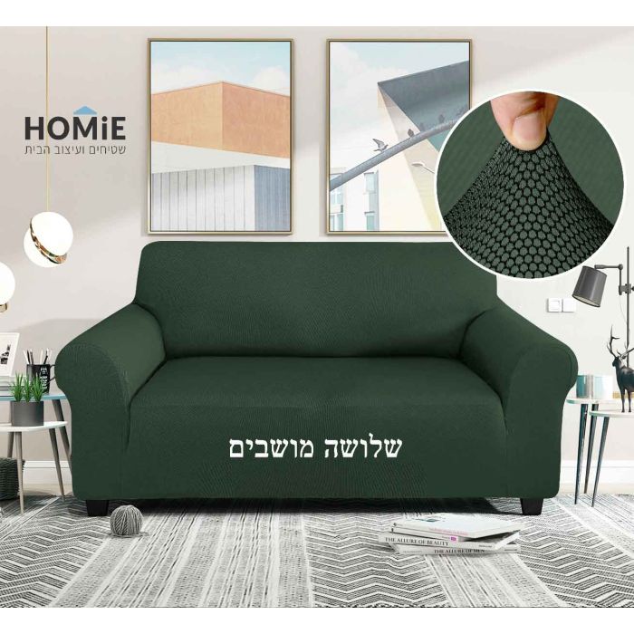 כיסוי סלון אלסטי כוורת בצבע ירוק מרווה דגם טיילור 04 – חלקים לבחירה