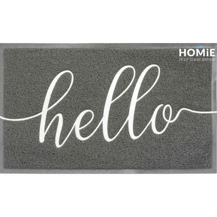 שטיח כניסה-סף לבית גומי PVC דקורטיבי מודרני Hello אפור לבן דגם מוניקה 04