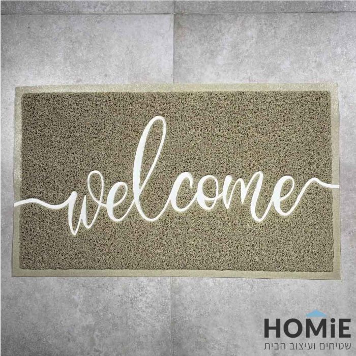 שטיח כניסה-סף לבית גומי PVC דקורטיבי מודרני Welcome בז' דגם מוניקה 03