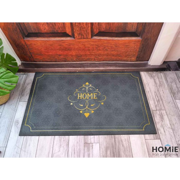 שטיח כניסה-סף לבית גומי עבה רטרו מודרני מדליון HOME כחול זהב דגם ניו יורק 35