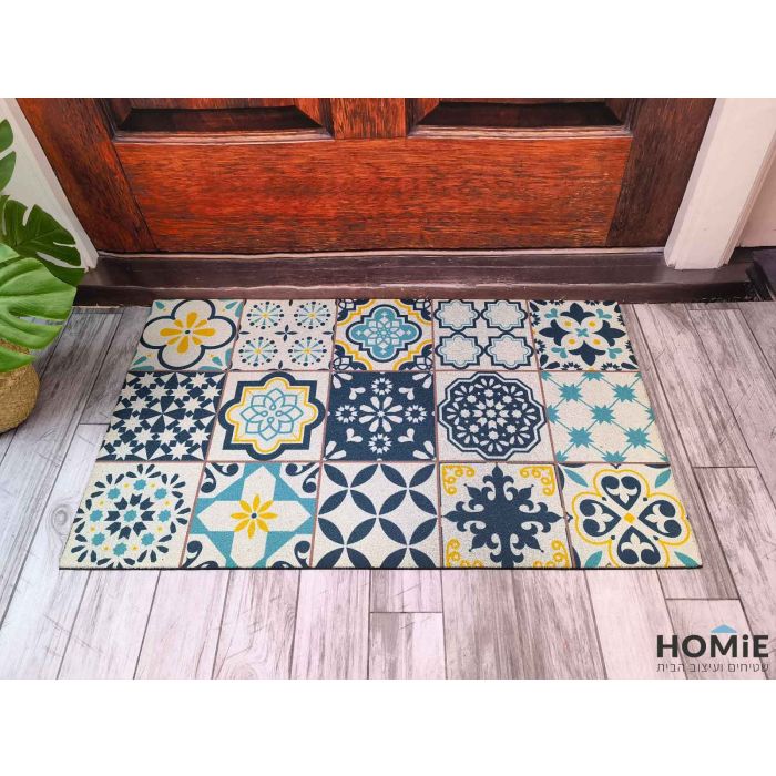 שטיח כניסה-סף לבית גומי עבה וינטג' מודרני גיאומטרי אקלקטי צבעוני מנדלות דגם ניו יורק 40. השטיח עשוי גומי עבה איכותי ויתאים לכל אזור בבית ומחוצה לו (מרפסת, גינה, משרד, בית ספר, גן ילדים, מתנ"ס, מפעל, אולם אירועים). השטיח הגיאומטרי מיוצר ברמות הגימור הגבוהות ביותר ומגיע בסגנון רטרו מהודר שתופס את העין ומשדרג כל חלל. האלמנטים, הצורות, הצבעים הנעימים לעין והניגודיות היפה ביניהם משדרגת את השטיח בכמה רמות ומעניקה לו יוקרה רבה. בנוסף השטיח ורסטילי, חזק, עמיד במים, מנקה היטב, יציב על הקרקע, פרקטי וקל לניקוי.