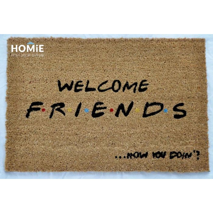 שטיח כניסה-סף לבית קוקוס טבעי דקורטיבי מודרני Friends דגם אוסטין 05. השטיח היוקרתי מגיע עם כיתוב מגניב שחור וצבעוני (התוכנית חברים) וישדרג כל חלל כניסה לבית בכמה דרגות. השטיח הנפלא יתאים גם לגינה, משרד, בית ספר, גן ילדים, מתנ"ס ואולם אירועים. השטיח עשוי 100% קוקוס טבעי, דבר המקנה לו איכות רבה ובעל גומי בתחתית המקנה לו חוזק ויציבות. בנוסף הוא ורסטילי, עבה, מנקה היטב את הנעליים, פרקטי וקל מאוד לניקוי. השטיח מגיע במידה סטנדרטית של 45X120.