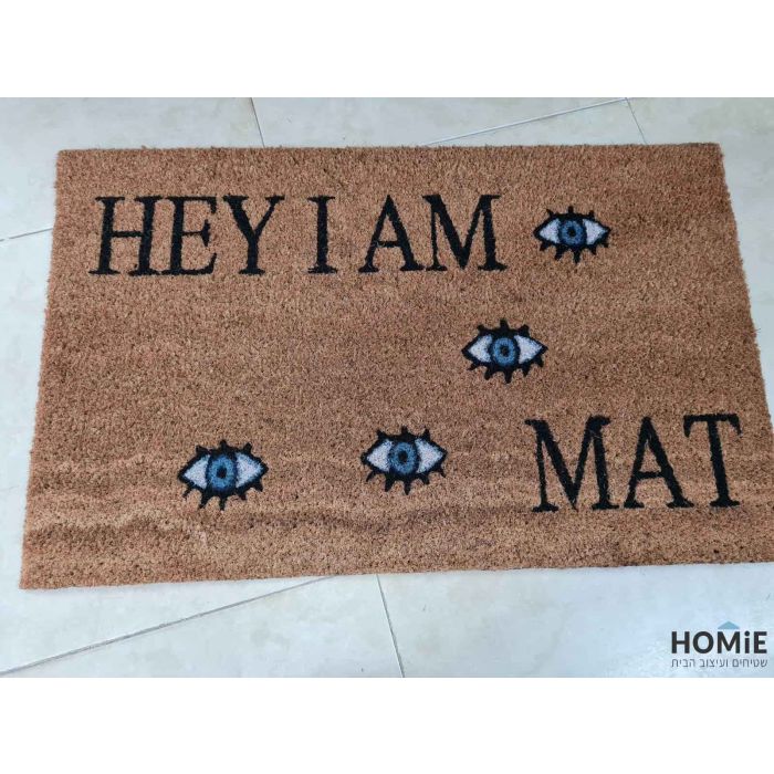 שטיח כניסה-סף לבית קוקוס טבעי דגם עיניים Hey I'm A Mat