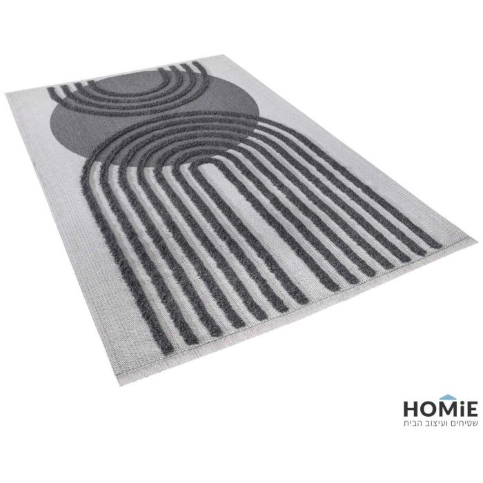 שטיח גיאומטרי אבסטרקטי מודרני כותנה צורות אפור שמנת דגם ליאנה 01