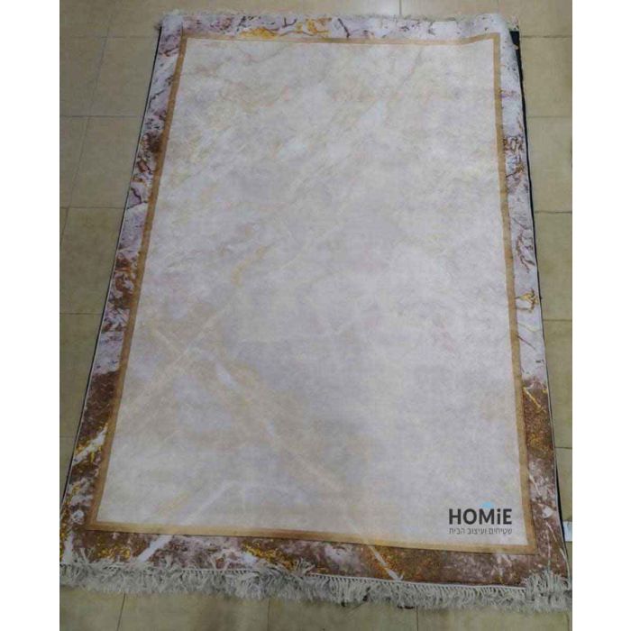 שטיח שיש גיאומטרי אבסטרקטי מסגרת חום בז' דגם מסאי 1705