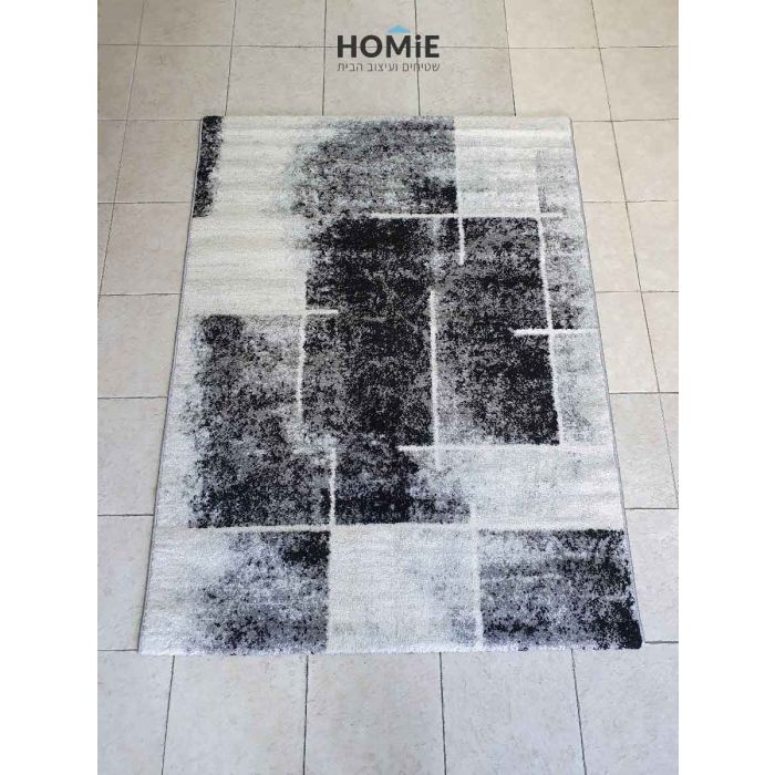 שטיח גיאומטרי אבסטרקטי מודרני מרובעים שחור אפור דגם מטרו 1541