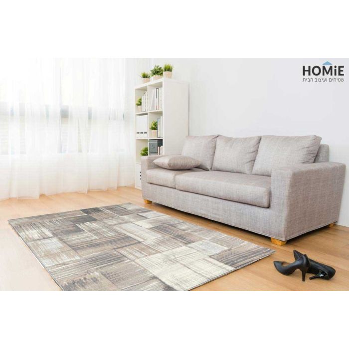 שטיח גיאומטרי אבסטרקטי מודרני טלאים בז' שמנת דגם ונוס 14