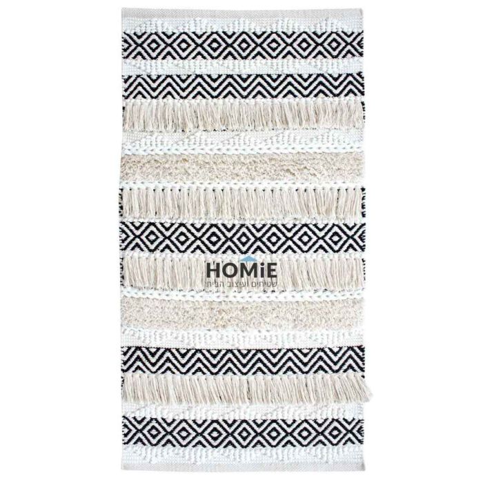 שטיח בוהו שיק כותנה גיאומטרי מעויינים עבודת יד חום בז' דגם קיארה 04