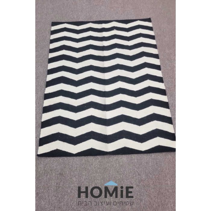 שטיח לסלון בוהו כותנה גיאומטרי זיגזג שחור לבן דגם וקטור