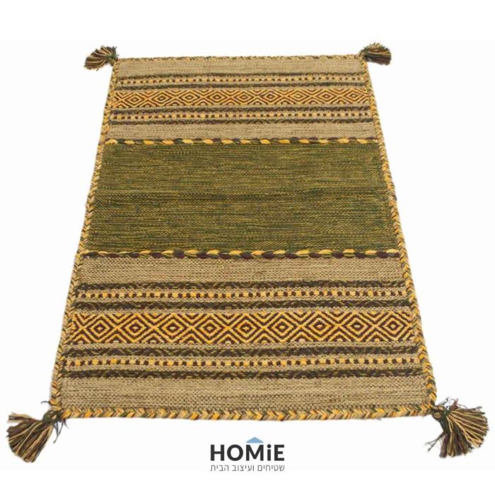 שטיח כותנה גיאומטרי קילים שבטי עבודת יד ירוק חרדל דגם ג'איפור 661