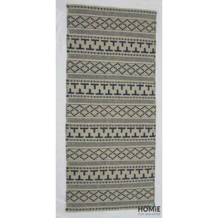 שטיח כותנה גיאומטרי קילים שבטי עבודת יד אוף וויט כחול דגם ג'איפור 671
