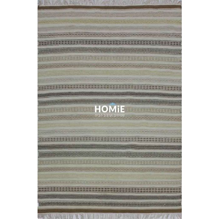 שטיח כותנה גיאומטרי פסים קילים שבטי עבודת יד חום בז' דגם ג'איפור 659