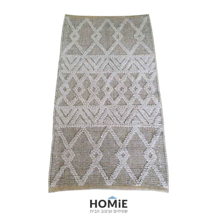 שטיח גיאומטרי מודרני בוהו כפרי נורדי סקנדינבי כותנה עבודת יד מעויינים שמנת דגם גטבורג
