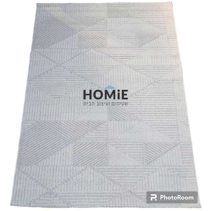 שטיח בוהו כפרי מודרני צורות גיאומטריות לולאות לבן דגם שוודיה 04