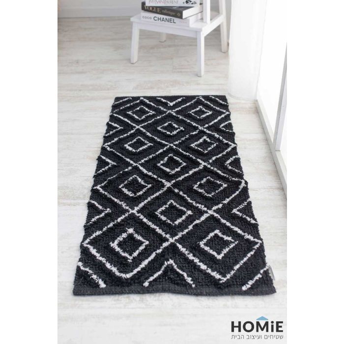 שטיח כותנה גיאומטרי מודרני מעויינים שחור לבן דגם סאקורה 06