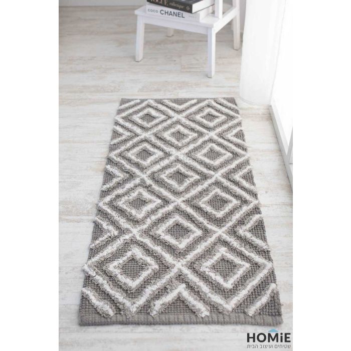 שטיח כותנה גיאומטרי מודרני מעויינים אפור דגם סאקורה 05