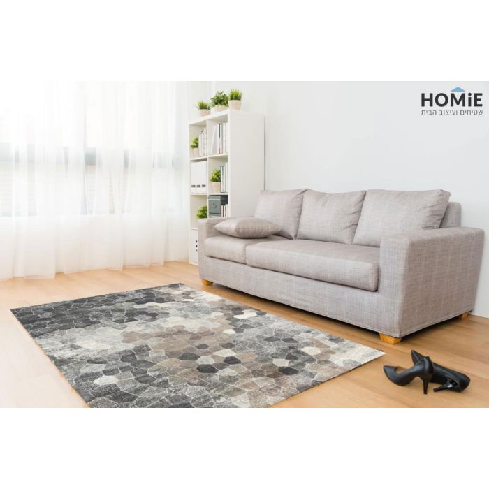 שטיח גיאומטרי מודרני צורות אפור בז' דגם ונוס 05
