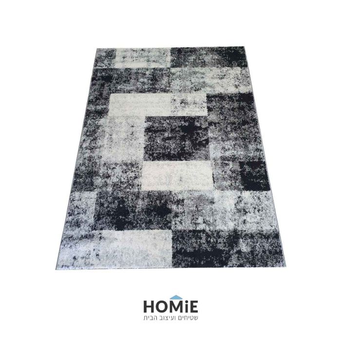 שטיח גיאומטרי מרובעים מודרני שחור אפור דגם מטרו 1540