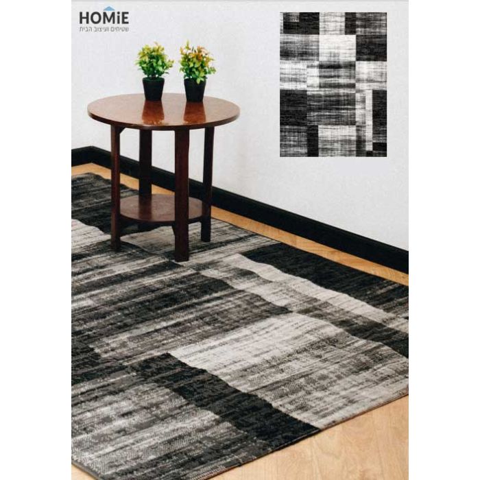 שטיח גיאומטרי טלאים שחור אפור דגם ג'יאנה 1403