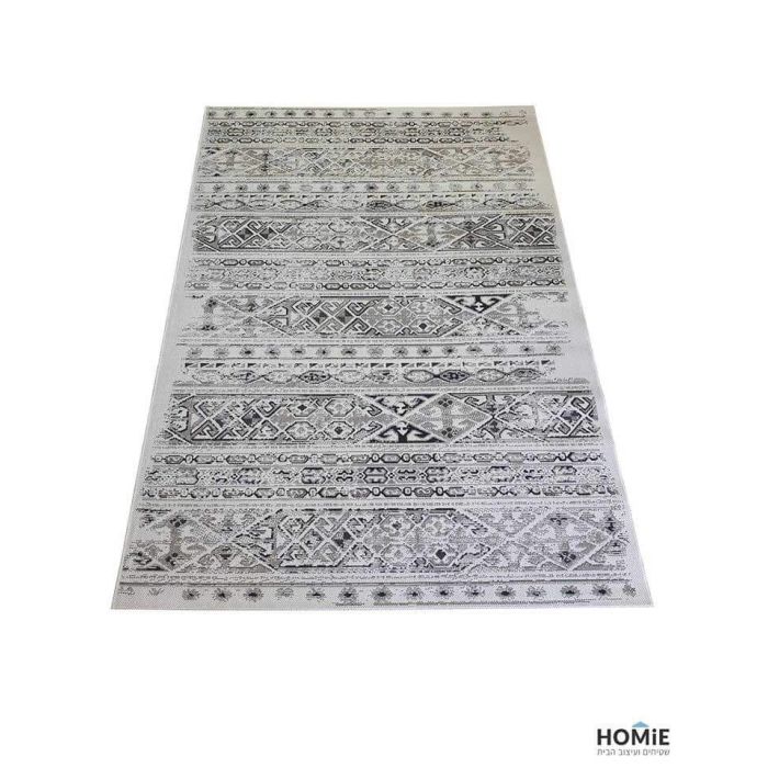 שטיח חבל גיאומטרי שבטי אתני אפור שחור דגם וויסטלר 12/286