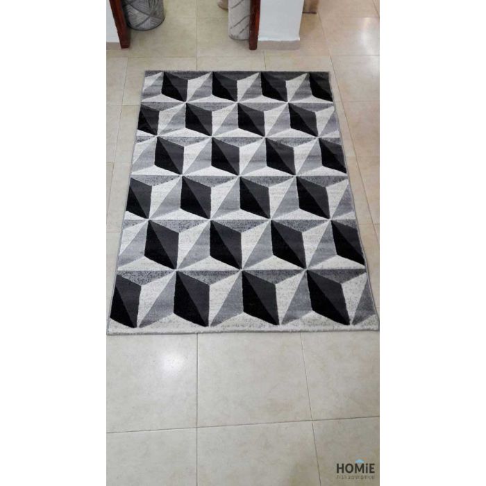 שטיח גיאומטרי קוביות תלת מימד אפור שחור דגם פיתגורס 50B