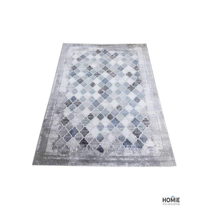 שטיח גיאומטרי מעויינים אפור תכלת דגם מילאנו 42/953