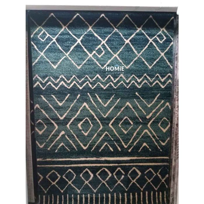 שטיח גיאומטרי שבטי מעויינים טורקיז שמנת דגם ורוניקה 08/437