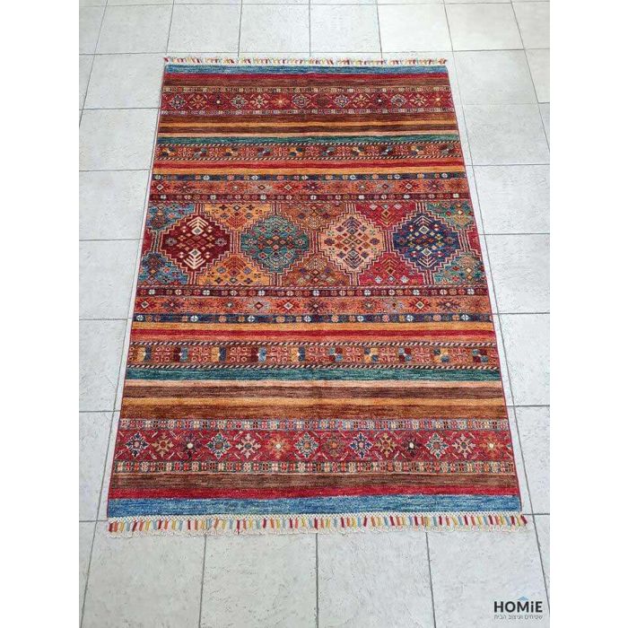 שטיח שאהל פרסי צמר עבודת יד סופר יוקרתי לסלון, לחדר שינה, לחדר ילדים, למטבח, לאמבטיה, למשרד ועוד. השטיח הצבעוני המדהים ביופיו עשוי 100% צמר כבשים ניו זילנדי משובח ומיוצר במולדת השטיחים איראן. הסגנון האתני השבטי, הצורות הגיאומטריות המרשימות, הפרנזים המסוגננים והצבעים העזים יכניסו המון חיות, צבעוניות, שיק, סטייל ויוקרה לחלל החדר. בגלל סגנונו הורסטילי הוא יתאים גם לסלונים מודרניים וגם לסלונים קלאסיים. בנוסף הוא עמיד, חזק, עבה, צפוף, נעים למגע, פרקטי וקל לניקוי.
