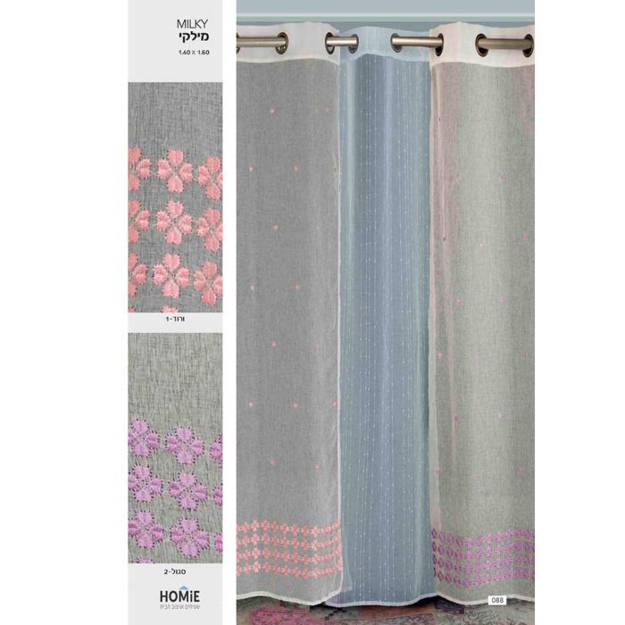 וילון דקורטיבי איכותי פרחוני לחדרי ילדים/תינוקות וגני ילדים דגם מילקי. הוילון החצי שקוף יכניס המון שיק וסטייל לחלל החדר. בנוסף הוא עמיד, נעים למגע, פרקטי וקל לניקוי.