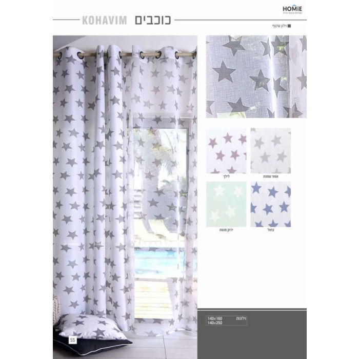 וילון לחדר ילדים חצי שקוף דגם כוכבים