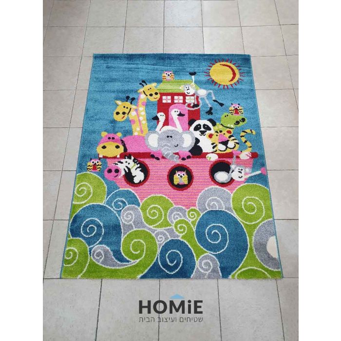 שטיח ילדים מודרני ויוקרתי דגם חיות בתיבת נח. שטיח איכותי וייחודי לחדר ילדים, המתאים גם לחדר תינוקות, חדר שינה, פינת משחקים, גני ילדים ובתי ספר. השטיח המעוצב עם חיות שמחות בתיבה של נוח, יחד עם הצבעים המרהיבים, יכניסו סטייל, נוכחות ושונות לחלל ויעלו חיוך על פני ילדכם. הסיפור התנ"כי המופלא של תיבת נח מעניק לשטיח פן היסטורי, מעניין ומלמד. השטיח ורסטילי, עמיד, חזק, עבה וצפוף, נעים למגע, יציב על הקרקע וקל לניקוי. אידיאלי לכל חדר, הוא משדר אווירה מיוחדת ומזמין. מידה: 120X160.