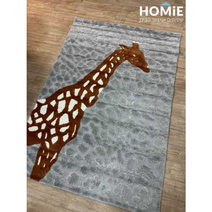שטיח לחדר ילדים דגם ג'ירפה | אפור חום לבן