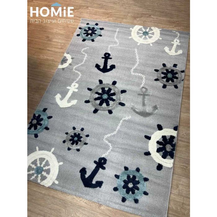 שטיח לחדר ילדים דגם הרפתקה בים | רקע אפור