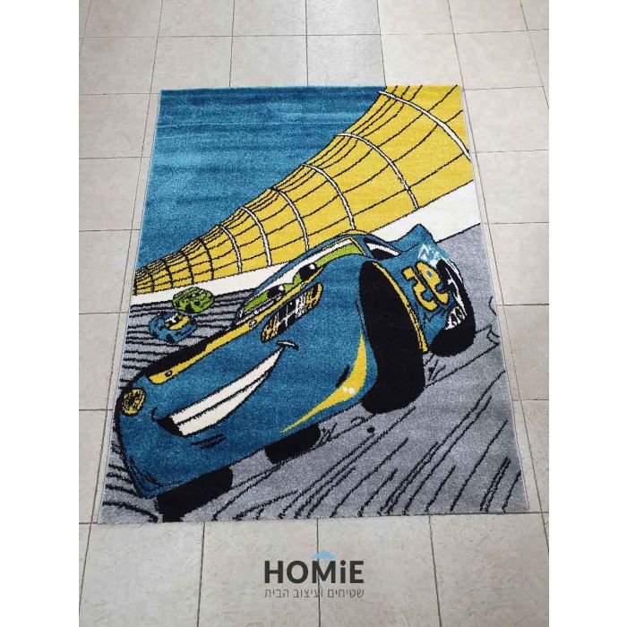 שטיח לחדר ילדים כחול צהוב דגם ספידי מכונית מירוץ