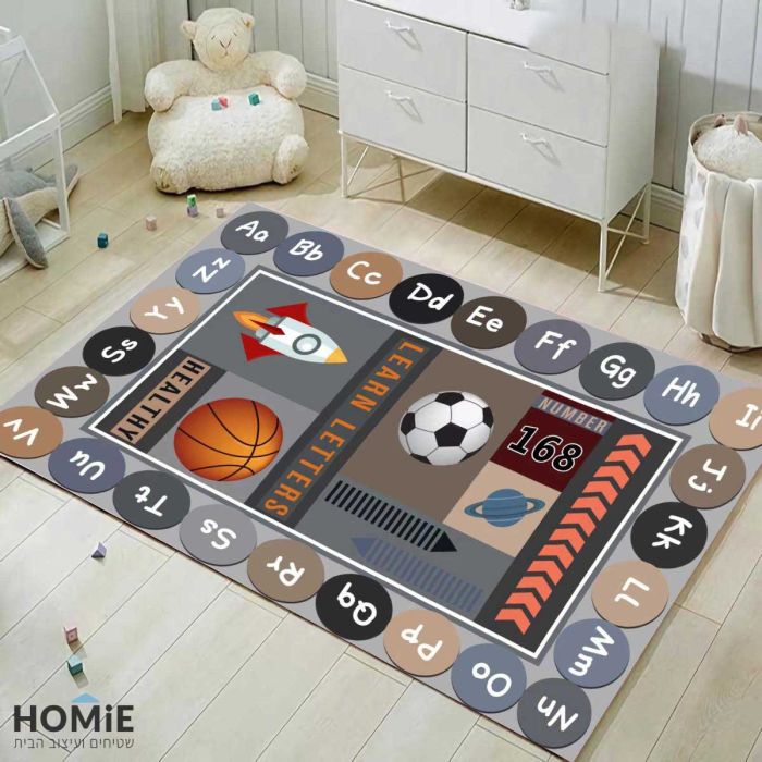 שטיח מודרני צבעוני לחדר ילדים דגם ספורט ומדע