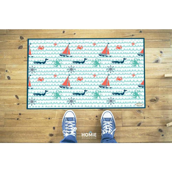 שטיח ויניל איכותי פי וי סי (PVC) לינולאום בהדפסה איכותית עם שכבה נגד החלקה דגם ים גלי בצבע טורקיז, אדום, כחול. השטיח ורסטילי (מתאים למטבח, לחדר ילדים ועוד), פרקטי, חזק וגמיש, קל מאוד לניקוי (עם מטלית לחה) ולייבוש. הוא מתיישב בצורה אופטימלית על הרצפה, אינו סופג מים ובעל עמידות גבוהה.