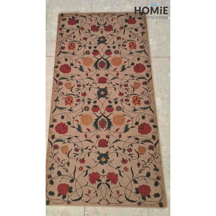 שטיח גומי למטבח וינטג' פרחוני בז' צבעוני דגם מדריד 62