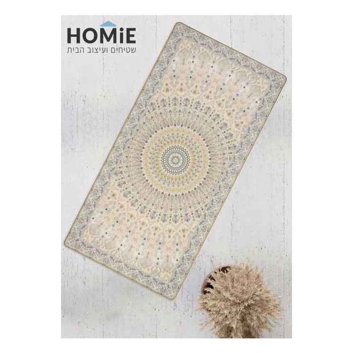 שטיח גומי למטבח רטרו גיאומטרי מודרני דקורטיבי מנדלה שמנת דגם מדריד 70
