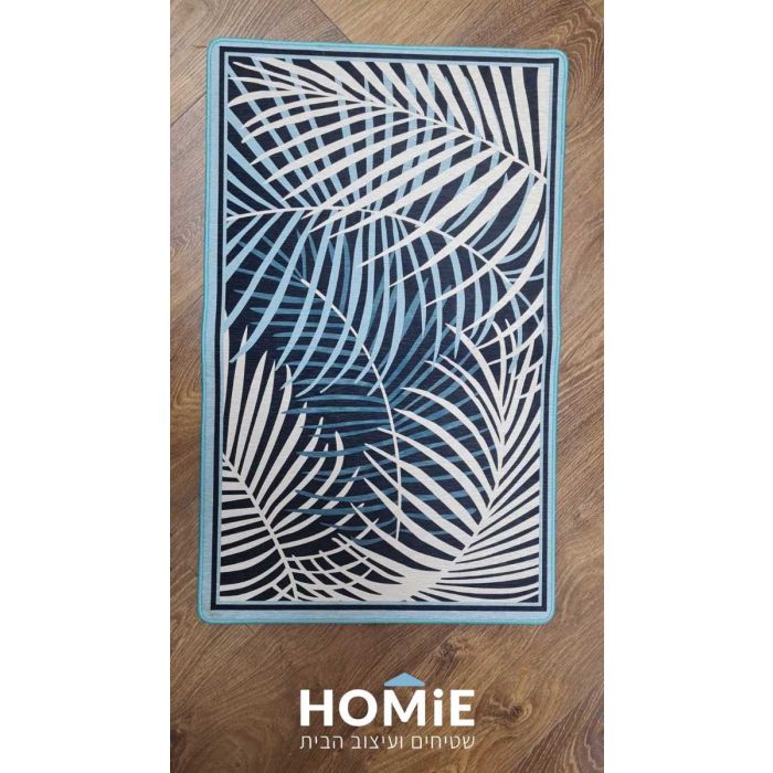 שטיח גומי למטבח מודרני דקורטיבי ענפי דקל תכלת שמנת דגם מדריד 73. השטיח היוקרתי יתאים גם לסלון, חדר שינה, חדר ילדים, אמבטיה, מסדרון, פינת אוכל, חדר עבודה, משרד, בית ספר, גן ילדים, חנות, מסעדה וגן אירועים. אצלנו בהומי שמים דגש רב על הפן האקולוגי לכן דאגנו להביא שטיח מחומרים טבעיים ובמקרה הזה מעץ הגומי הקרוי "הוואה ברזילאית" (Hevea Brasiliensis) או "קאוצ'וק". ההוואה הברזילאית גדלה פרא ביערות ברזיל, באגן האמזונאס, בעיקר מדרום לנהר. השימוש בעץ היה ידוע לאינדיאנים ילידי המקום והם יצרו מוצרים שונים ומגוונים מהלטקס. השטיח בעל שכבת פוליאסטר נעימה בחלקו העליון ובחלקו התחתון גומי, לכן הוא יציב מאוד על הקרקע ולא מחליק. יתרונו הגדול: רב גוניות, לכן יתאים לחללים מודרניים וגם לקלאסיים. בנוסף השטיח חזק, עמיד במים, פרקטי וקל מאוד לניקוי. ניתן לכבס ב-30 מעלות כביסה עדינה ללא סחיטה. ייבוש בצל.